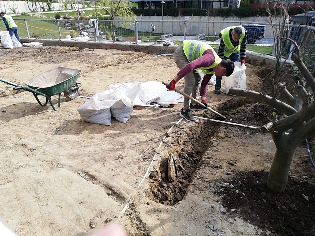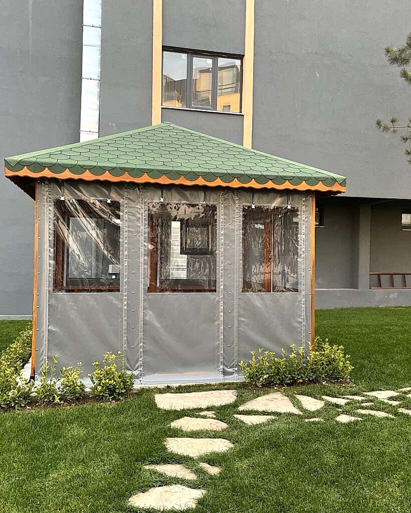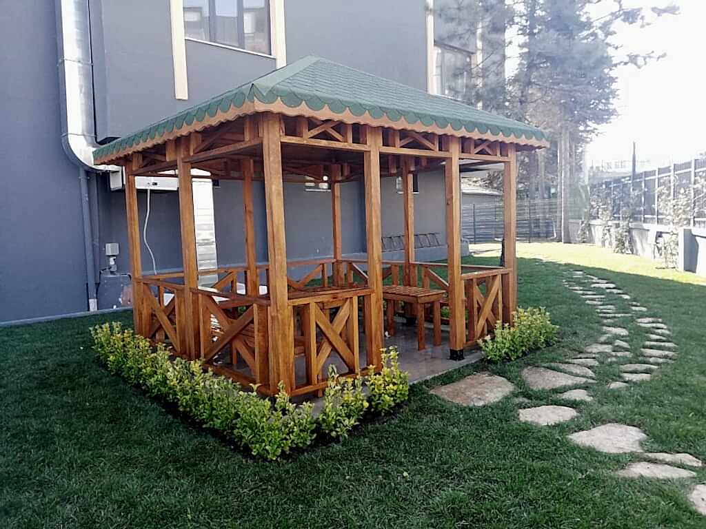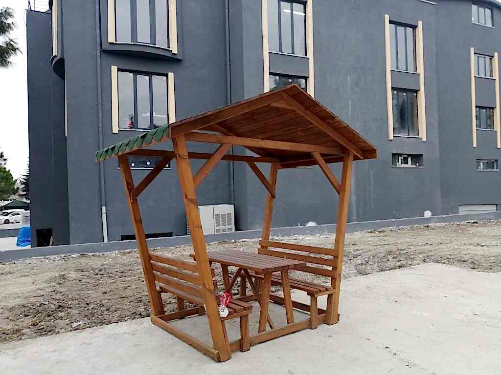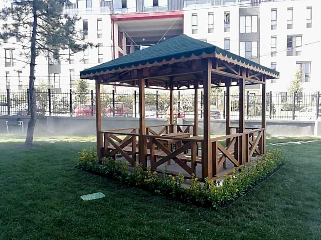 Azerbaycan'da peyzaj tasarımcısı dış mekan mobilyaları ve yapılarını planlar.