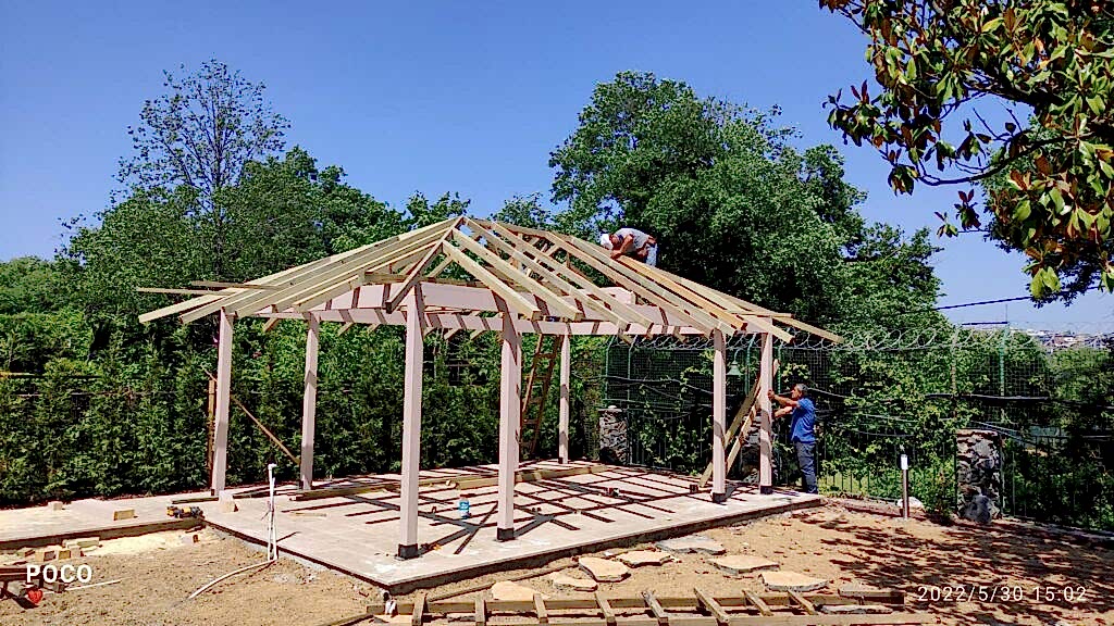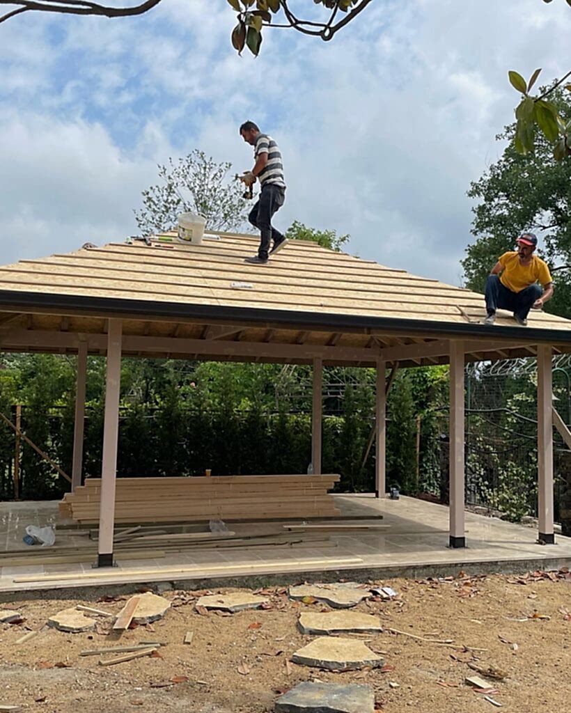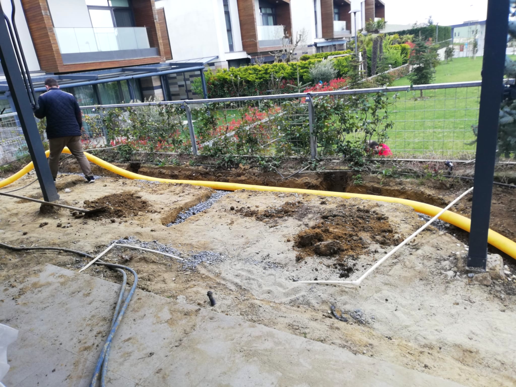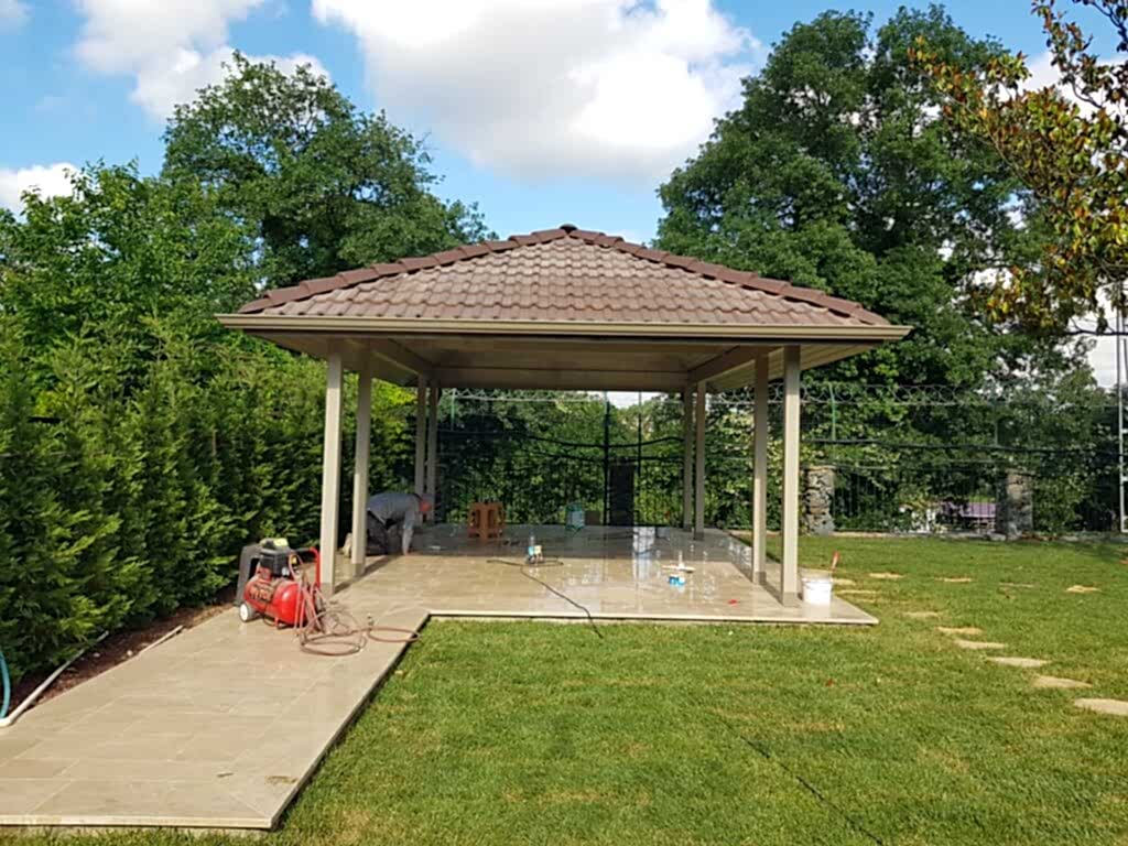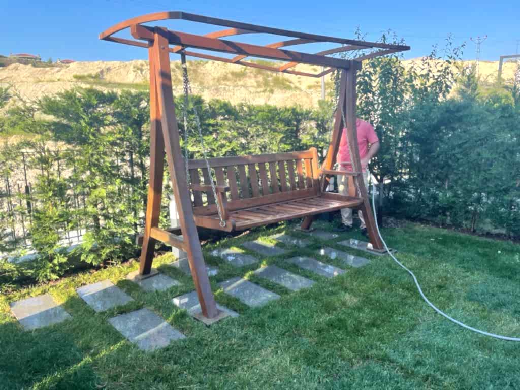 Azerbaycan'da peyzaj tasarımcısı dış mekan mobilyaları ve yapılarını planlar.